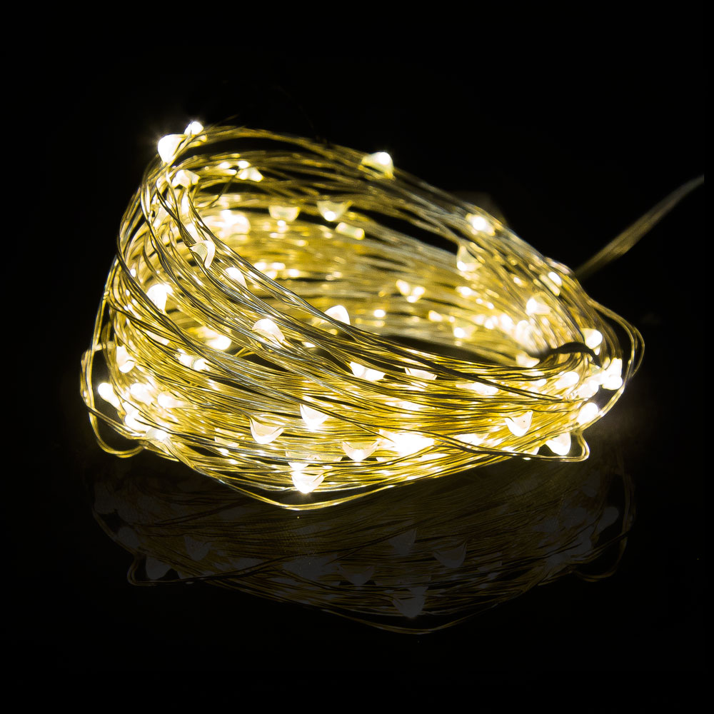 • Bonus 10 metres of shapeable, battery operated copper wire string lights, with 100 bulbs, included for free.