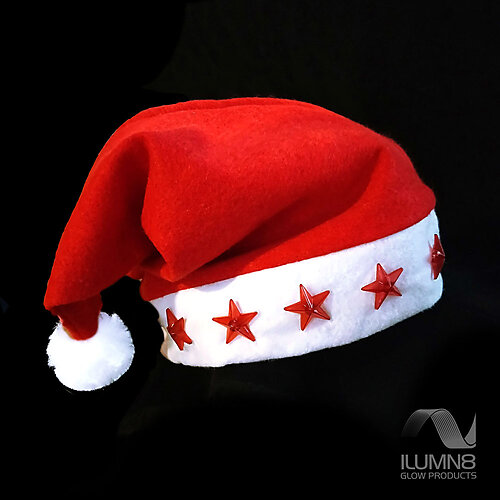 SANTA HAT-RED W/LIGHT UP STARS 38CM 1PC